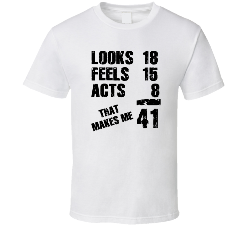 Looks 18 Feels 15 Acts 8 That Makes Me 41 funny age T Shirt
