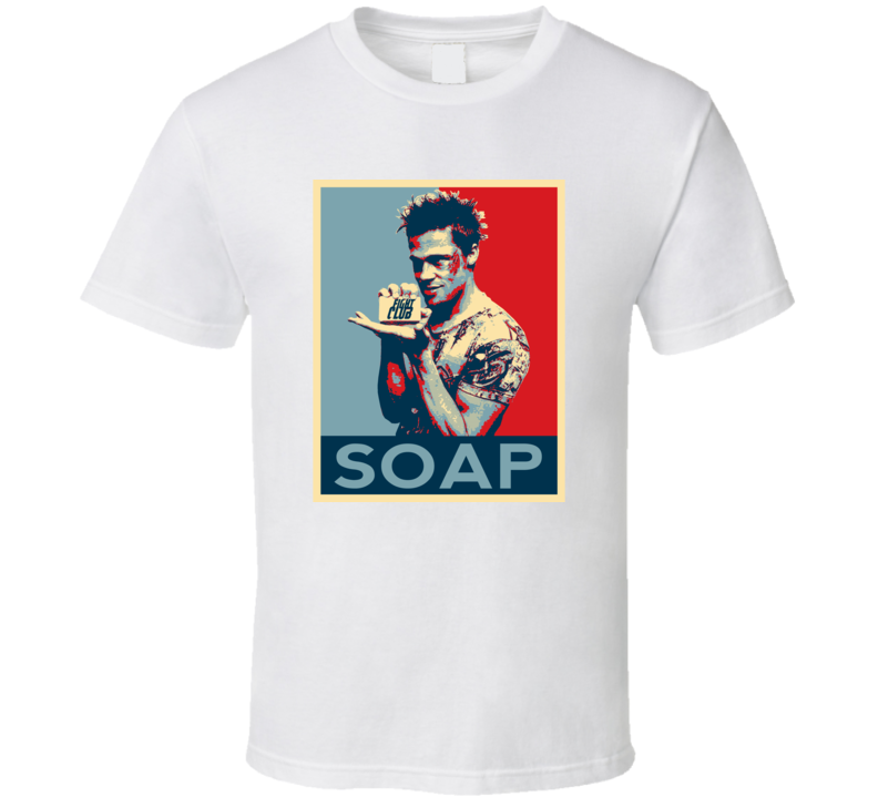 Order your very own SOAP Fight Club Brad Pitt Obama Hope Style T Shirt . It won’t be around forever so buy yours here today! Shop our huge selection of high quality, graphic apparel. Each design is offered on a variety of sizes and styles including; t shirts, hoodies, aprons and even baby one-pieces! This product is pre-treated to ensure quality and longevity of the graphic.