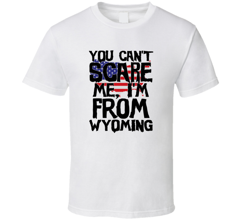 Order your very own Wyoming You Can't Scare Me I'm From Funny Proud USA T Shirt. It won’t be around forever so buy yours here today! Shop our huge selection of high quality, graphic apparel. Each design is offered on a variety of sizes and styles including; t shirts, hoodies, aprons and even baby one-pieces! This product is pre-treated to ensure quality and longevity of the graphic.