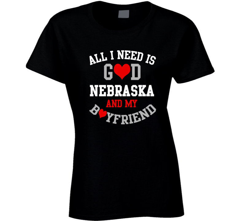 Order your very own Nebraska All I Need Is God State And My Boyfriend USA Proud College T Shirt. It won’t be around forever so buy yours here today! Shop our huge selection of high quality, graphic apparel. Each design is offered on a variety of sizes and styles including; t shirts, hoodies, aprons and even baby one-pieces! This product is pre-treated to ensure quality and longevity of the graphic.