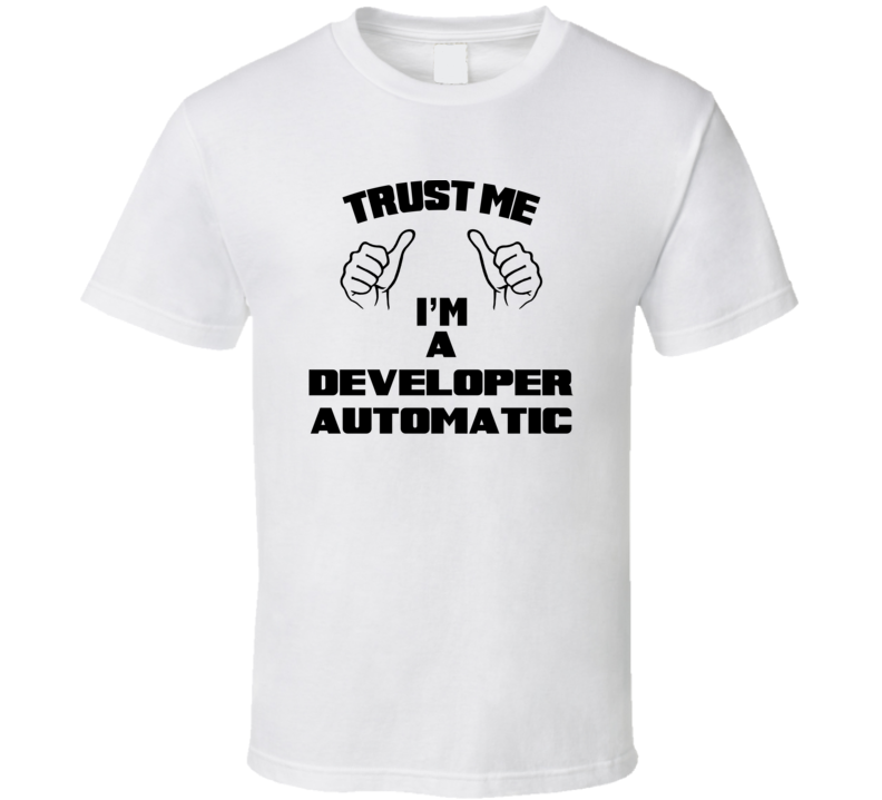 Order your very own Trust Me Im A Developer Automatic Job Title Funny T Shirt. It won’t be around forever so buy yours here today! Shop our huge selection of high quality, graphic apparel. Each design is offered on a variety of sizes and styles including; t shirts, hoodies, aprons and even baby one-pieces! This product is pre-treated to ensure quality and longevity of the graphic.