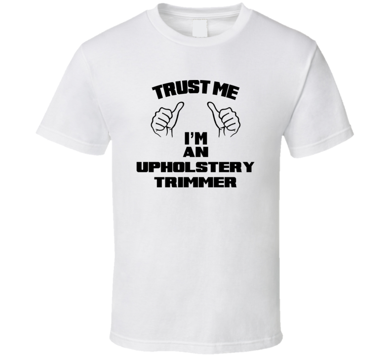 Order your very own Trust Me Im An Upholstery Trimmer Job Title Funny T Shirt. It won’t be around forever so buy yours here today! Shop our huge selection of high quality, graphic apparel. Each design is offered on a variety of sizes and styles including; t shirts, hoodies, aprons and even baby one-pieces! This product is pre-treated to ensure quality and longevity of the graphic.