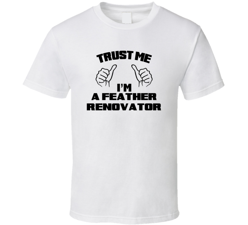 Order your very own Trust Me Im A Feather Renovator Job Title Funny T Shirt. It won’t be around forever so buy yours here today! Shop our huge selection of high quality, graphic apparel. Each design is offered on a variety of sizes and styles including; t shirts, hoodies, aprons and even baby one-pieces! This product is pre-treated to ensure quality and longevity of the graphic.