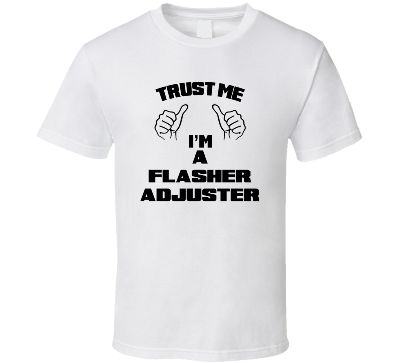Order your very own Trust Me Im A Flasher Adjuster Job Title Funny T Shirt. It won’t be around forever so buy yours here today! Shop our huge selection of high quality, graphic apparel. Each design is offered on a variety of sizes and styles including; t shirts, hoodies, aprons and even baby one-pieces! This product is pre-treated to ensure quality and longevity of the graphic.