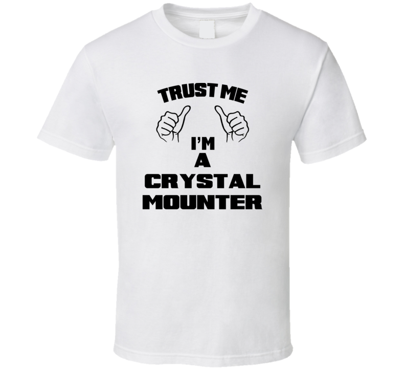 Order your very own Trust Me Im A Crystal Mounter Job Title Funny T Shirt. It won’t be around forever so buy yours here today! Shop our huge selection of high quality, graphic apparel. Each design is offered on a variety of sizes and styles including; t shirts, hoodies, aprons and even baby one-pieces! This product is pre-treated to ensure quality and longevity of the graphic.