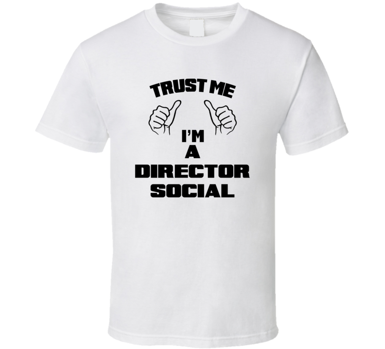 Order your very own Trust Me Im A Director Social Job Title Funny T Shirt. It won’t be around forever so buy yours here today! Shop our huge selection of high quality, graphic apparel. Each design is offered on a variety of sizes and styles including; t shirts, hoodies, aprons and even baby one-pieces! This product is pre-treated to ensure quality and longevity of the graphic.