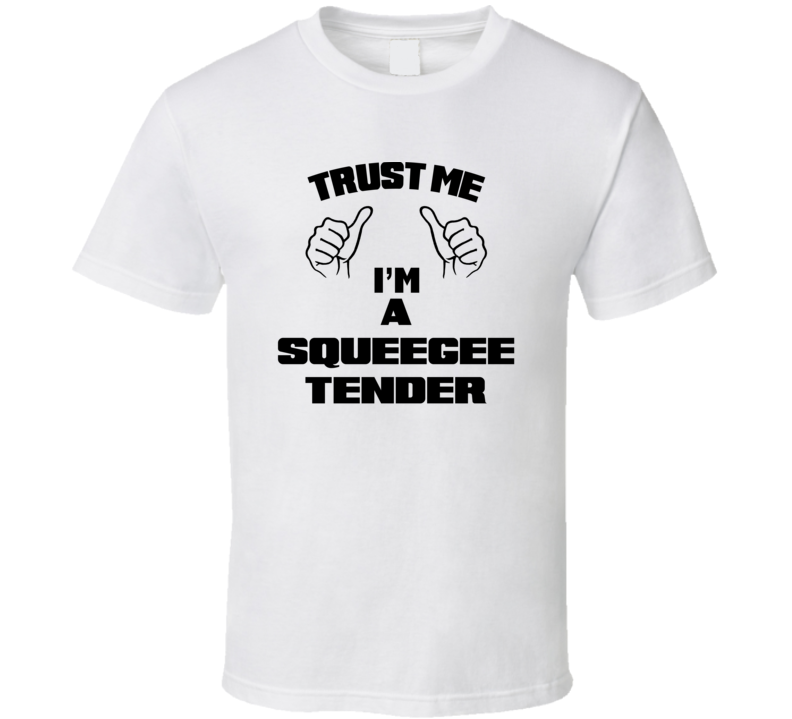 Order your very own Trust Me Im A Squeegee Tender Job Title Funny T Shirt. It won’t be around forever so buy yours here today! Shop our huge selection of high quality, graphic apparel. Each design is offered on a variety of sizes and styles including; t shirts, hoodies, aprons and even baby one-pieces! This product is pre-treated to ensure quality and longevity of the graphic.
