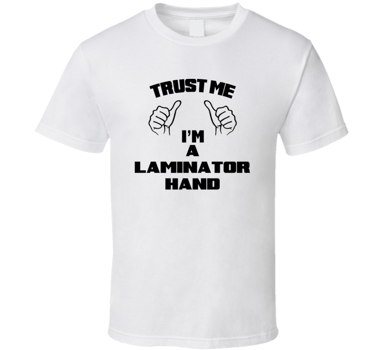 Order your very own Trust Me Im A Laminator Hand Job Title Funny T Shirt. It won’t be around forever so buy yours here today! Shop our huge selection of high quality, graphic apparel. Each design is offered on a variety of sizes and styles including; t shirts, hoodies, aprons and even baby one-pieces! This product is pre-treated to ensure quality and longevity of the graphic.