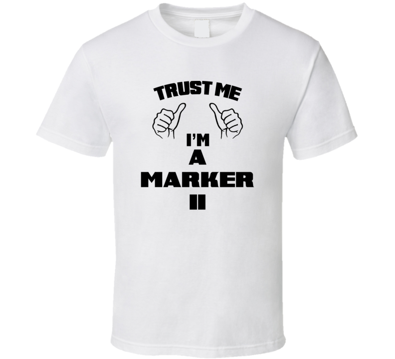 Order your very own Trust Me Im A Marker Ii Job Title Funny T Shirt. It won’t be around forever so buy yours here today! Shop our huge selection of high quality, graphic apparel. Each design is offered on a variety of sizes and styles including; t shirts, hoodies, aprons and even baby one-pieces! This product is pre-treated to ensure quality and longevity of the graphic.