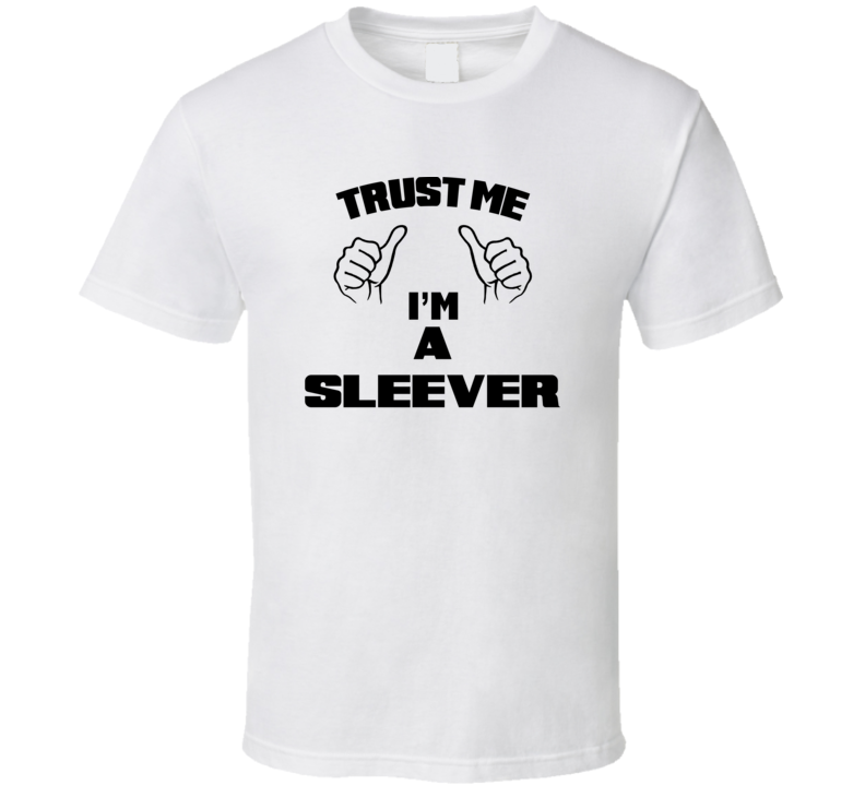 Order your very own Trust Me Im A Sleever Job Title Funny T Shirt. It won’t be around forever so buy yours here today! Shop our huge selection of high quality, graphic apparel. Each design is offered on a variety of sizes and styles including; t shirts, hoodies, aprons and even baby one-pieces! This product is pre-treated to ensure quality and longevity of the graphic.