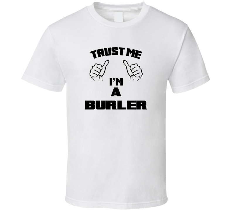 Order your very own Trust Me Im A Burler Job Title Funny T Shirt. It won’t be around forever so buy yours here today! Shop our huge selection of high quality, graphic apparel. Each design is offered on a variety of sizes and styles including; t shirts, hoodies, aprons and even baby one-pieces! This product is pre-treated to ensure quality and longevity of the graphic.