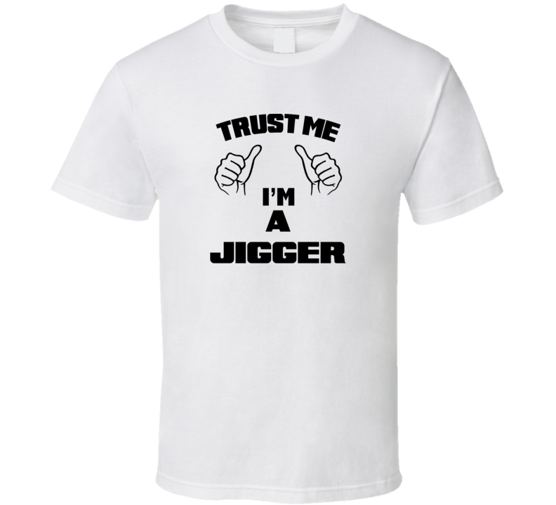 Order your very own Trust Me Im A Jigger Job Title Funny T Shirt. It won’t be around forever so buy yours here today! Shop our huge selection of high quality, graphic apparel. Each design is offered on a variety of sizes and styles including; t shirts, hoodies, aprons and even baby one-pieces! This product is pre-treated to ensure quality and longevity of the graphic.