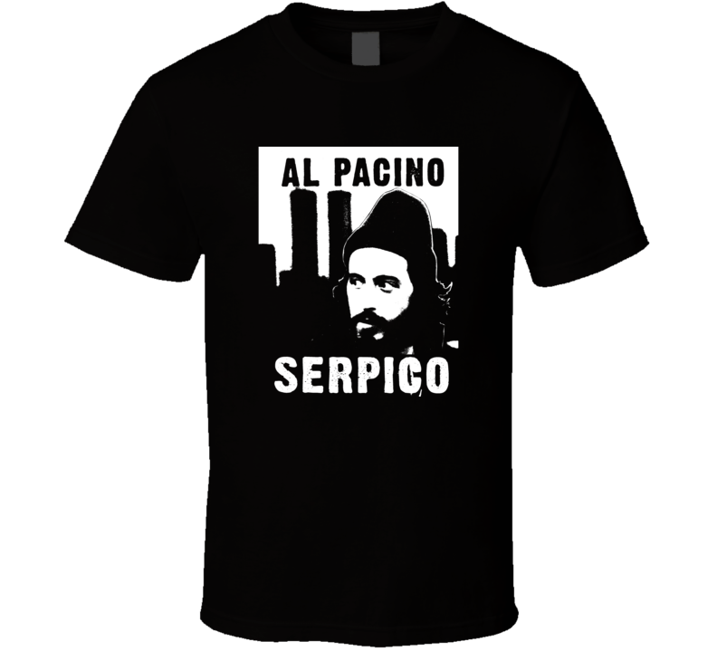 Order your very own Serpico Al Pacino 70s Movie Fan T Shirt. It won’t be around forever so buy yours here today! Shop our huge selection of high quality, graphic apparel. Each design is offered on a variety of sizes and styles including; t shirts, hoodies, aprons and even baby one-pieces! This product is pre-treated to ensure quality and longevity of the graphic.